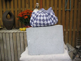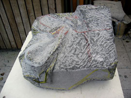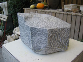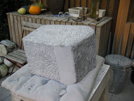 begin met een blok belgisch hardsteen, 30 x 25 x 25 cm met een