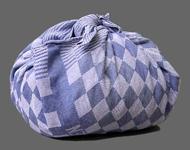 om en gingen met hun vuile goed in de dichtgeknoopte handdoek